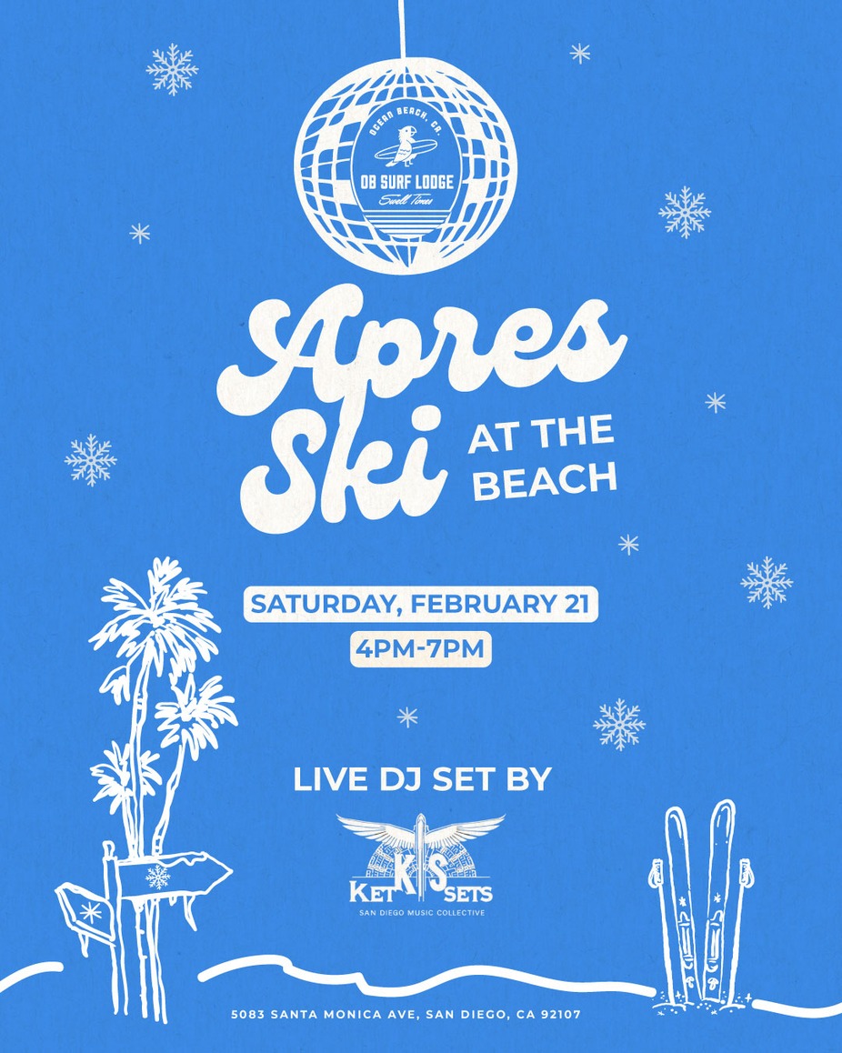 No lift ticket required ❄️🔥 Join us for an Après-Ski Dance Party at OB Surf Lodge / Sunset Plaza! We’re bringing the alpine energy to the beach with a live DJ set by Ket Sets, great vibes, and the perfect excuse to break out your best (beachy) ski fits. RSVP HERE